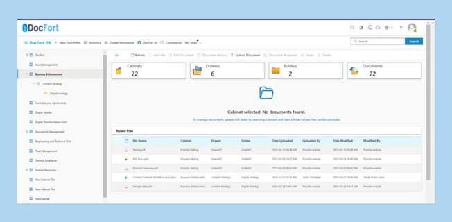 Note:After following the prompt above, you will be on the DocFort Landing Page. See the image above for reference.
